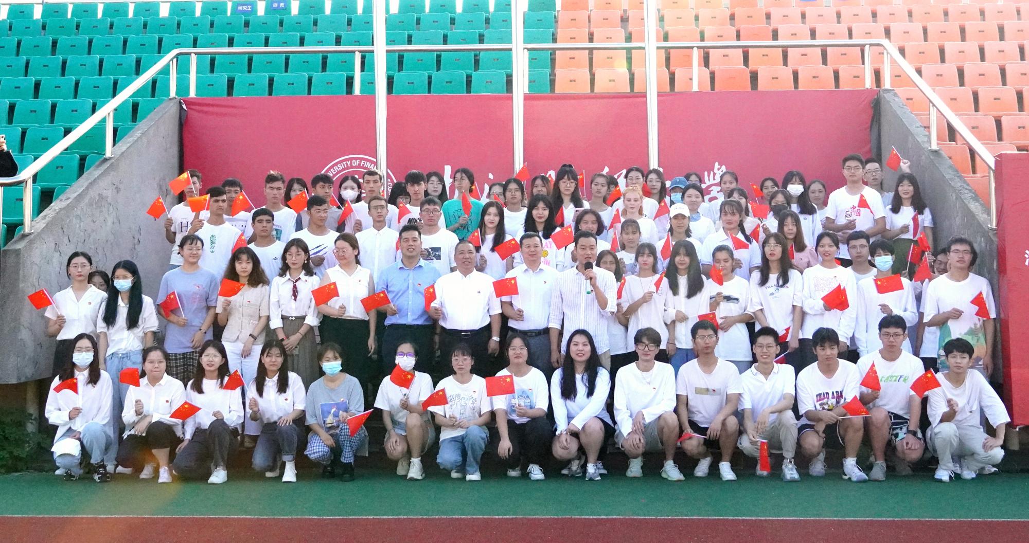 学子何峻毅全运会百米自由泳夺冠的喜讯,赞扬了他们或是维护民族团结、或是为校为国争光的青年之姿;最后,黄书记从四个方面寄语莘莘学子,表达殷切期望——爱国爱民、锤炼品德、勇于创新、实学实干,鼓励工商学子勇立潮头,成为时代浪潮中自信豪迈的掌舵人,为党的百年风华缔造的宏图伟业而倍加自豪,为祖国七十二载奠定的光明前途而奋斗不止!