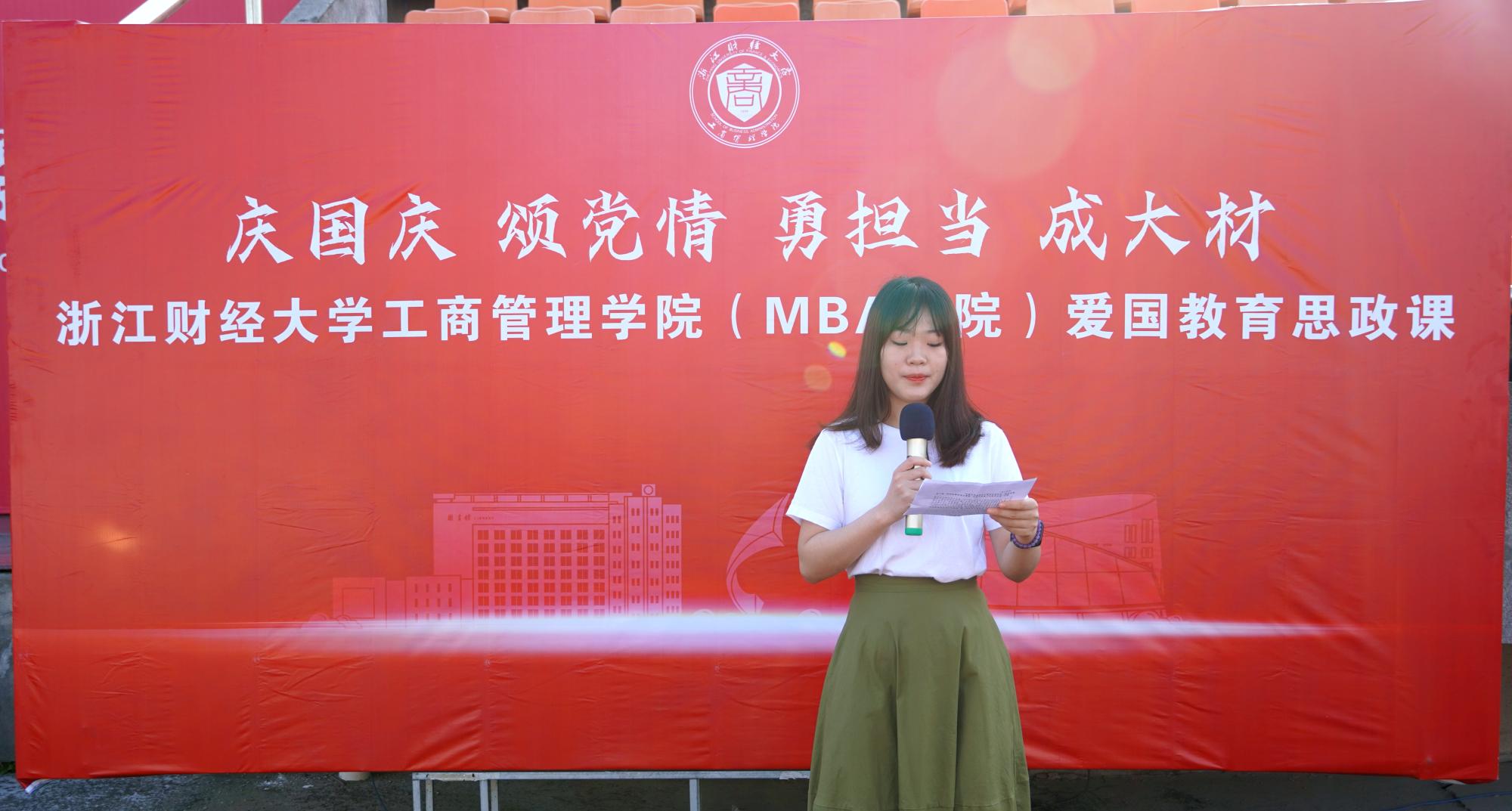 随后,学生党员代表张艳丽以“担当青年时代使命,发挥党员先锋模范作用”为题作国旗下讲话,从历史时空、情感认同、立志取向与实际行动四个角度生动地阐释了担当青年使命的不凡意义,呼吁全体党员、入党积极分子要勇担时代重任、投身社会主义建设、服务人民群众,号召工商学子“带上对祖国最清澈的爱,踏上青春的征程,成为担当民族大任的新时代青年!”