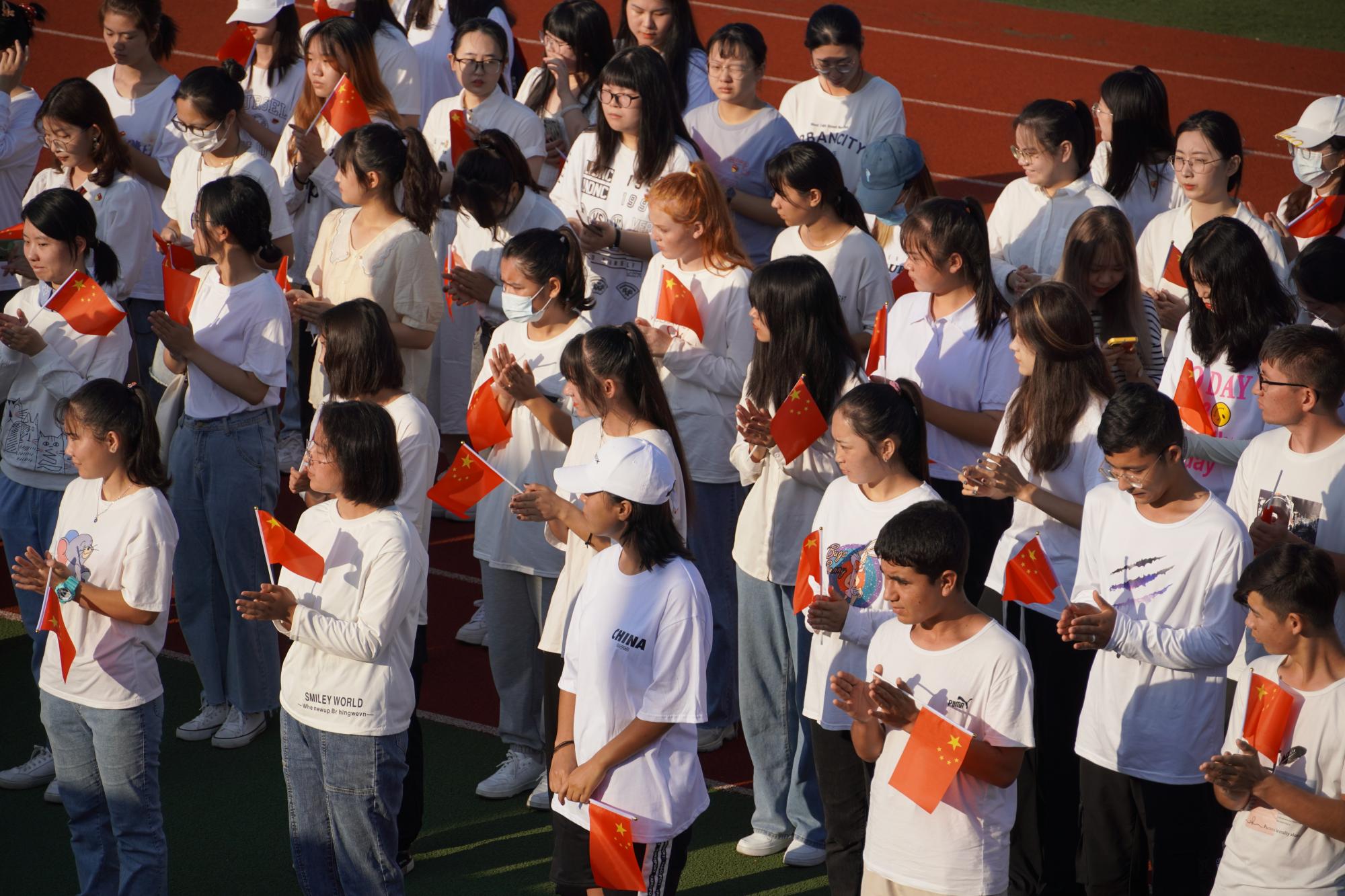 师生齐聚西操场隆重举行国庆升旗仪式。工商学院党委书记黄卫华、党委副书记吴玻、学院专职组织员、辅导员、学生党员、入党积极分子以及全体新疆籍预科班同学在国旗下举行以“庆国庆,颂党情,勇担当,成大材”为主题的爱国思政课,以这庄严的方式向伟大祖国致敬献礼!