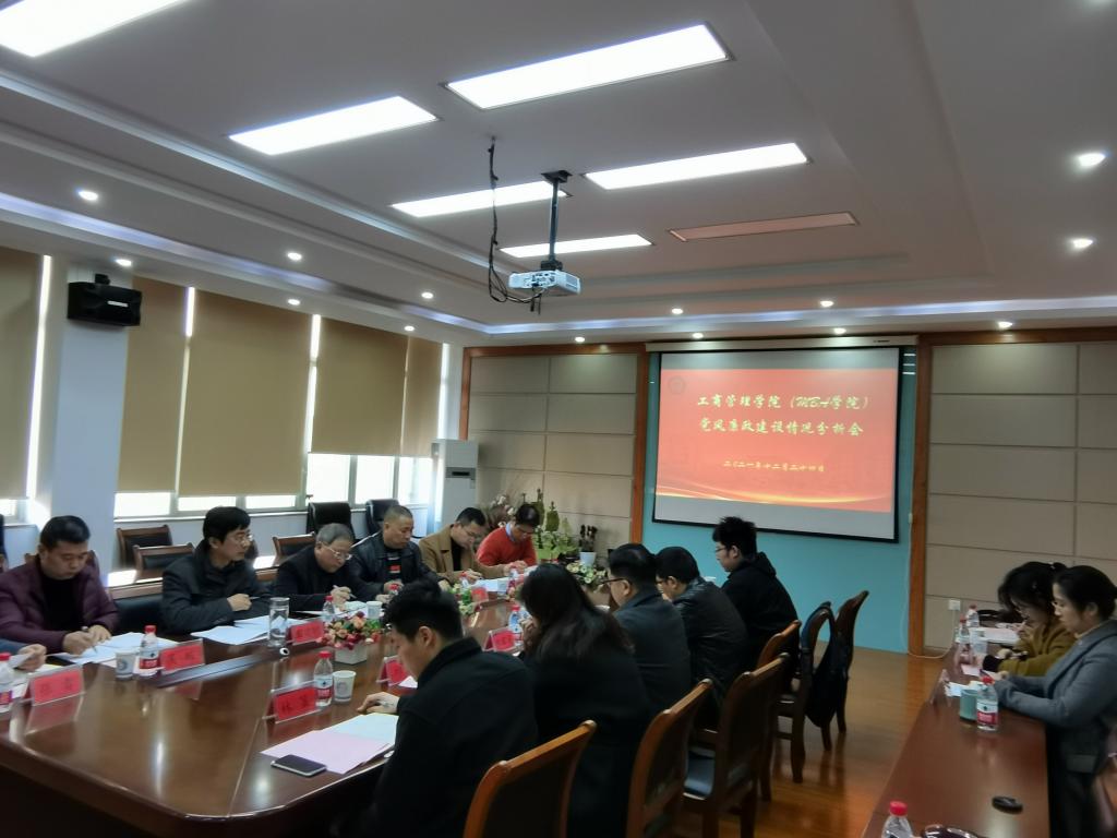 (MBA学院)在410会议室召开2021年度党风廉政建设情况分析会。校长钟晓敏、党校办副主任张成亮、学院领导班子成员、党委委员、纪委委员及相关负责人参加会议。会议由院党委书记黄卫华主持。