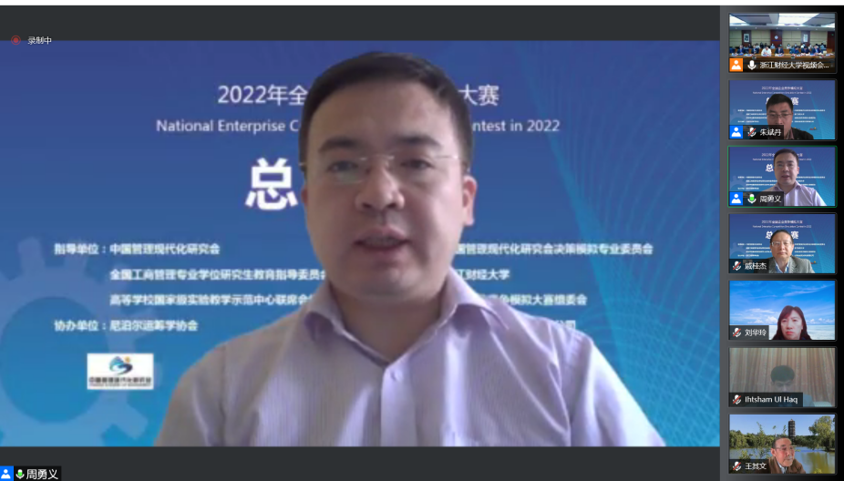 5月14日上午,由我校承办的2022年全国企业竞争模拟大赛总决赛开幕式隆重召开。校党委委员、副校长董进才,省教育厅高教处副处长廖波,中国高等教育学会事业发展部主任吴英策,教育部工商管理类专业教学指导委员会秘书长葛京,全国工商管理专业学位研究生教育指导委员会秘书处办公室主任王萍,中国管理现代化研究会联职理事长石勇,高等学校国家级实验教学示范中心联席会副秘书长周勇义,高校竞赛评估与管理体系研究专家工作组成员赵春鱼,校教务处处长李政辉等专家学者以及学院党委书记黄卫华,副书记吴玻,副院长张雷、戴维奇等出席。工商肉漫屋