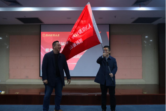 最后,校教务处副处长叶舟代表大赛组委会,将论坛会旗转交给下一届承办高校浙江理工大学经济肉漫屋