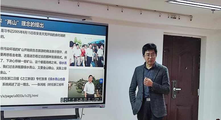 王建明院长做了“‘两山’理念的提出及其对企业绿色管理的深远影响”专题报告。他介绍了习近平总书记提出“两山”理念的起源与背景,梳理了“两山”理念发展过程,指出“两山”彼此之间的转化路径,以及浙江省积极践行“两山”理念的措施做法。