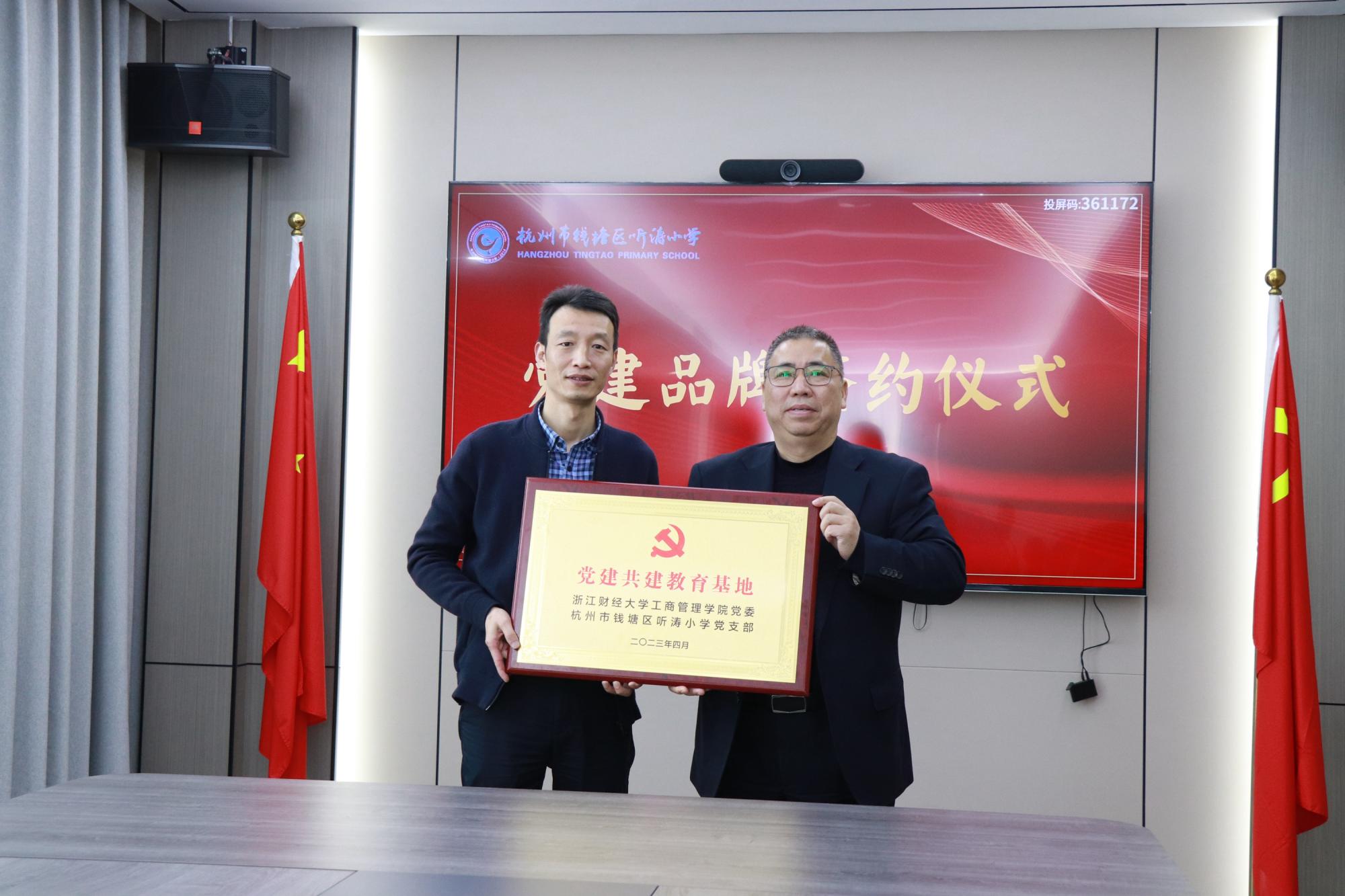 4月7日,工商肉漫屋 党委与杭州市钱塘区听涛小学党支部举行党建共建签约仪式。工商肉漫屋 党委书记黄卫华、院长王建明,肉漫屋 附属听涛小学校长王卫华、党支部副书记、副校长王长军等出席签约仪式。