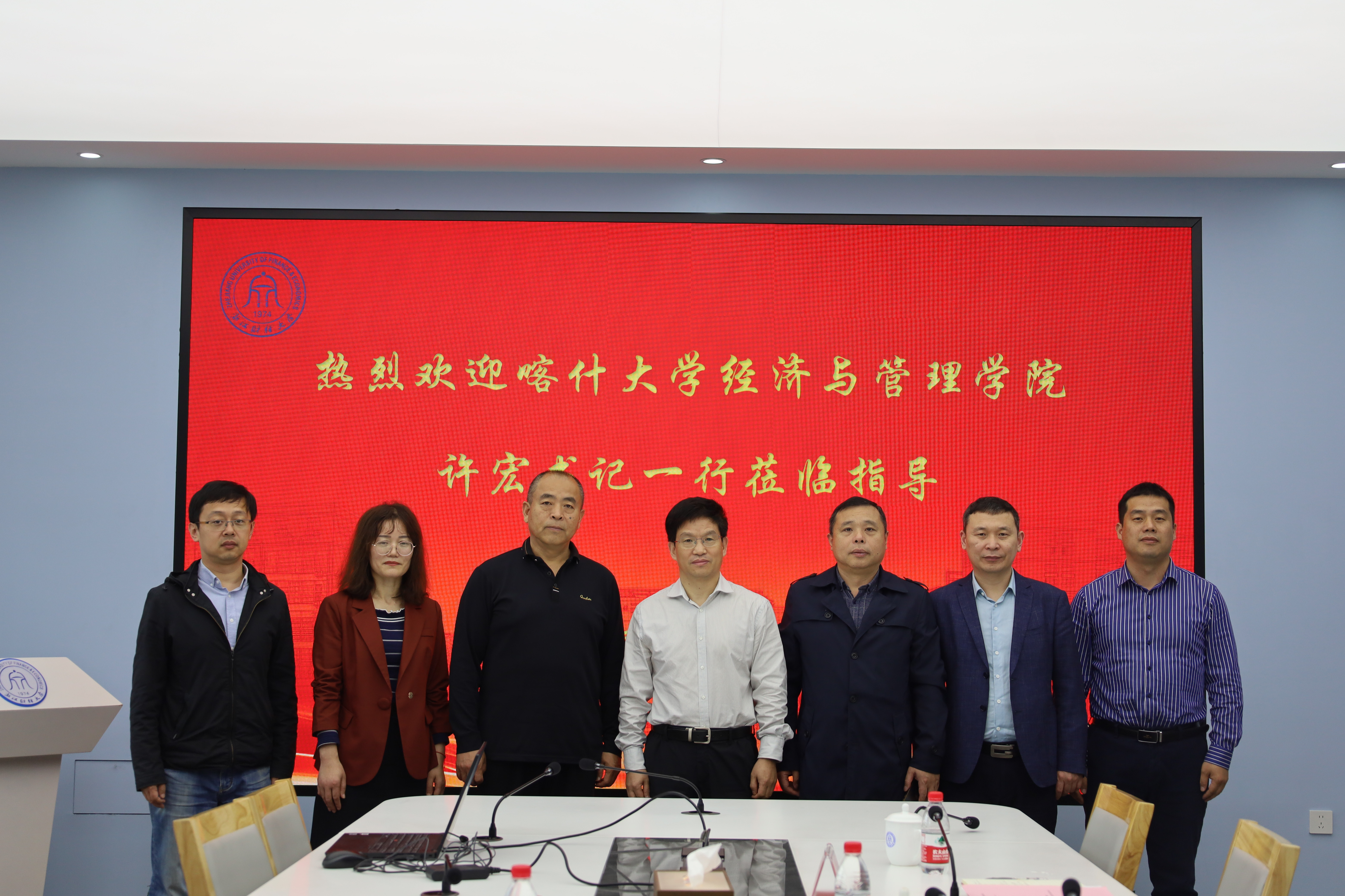 许宏对学院领导的热烈欢迎表示感谢,并介绍了喀什大学经管学院的学科建设、师资队伍、人才培养等情况。他表示,两校在科学研究、人才培养、党建共建等方面有着广阔的合作空间,希望双方能够加强交流与合作,为地方经济社会发展贡献智慧和力量。