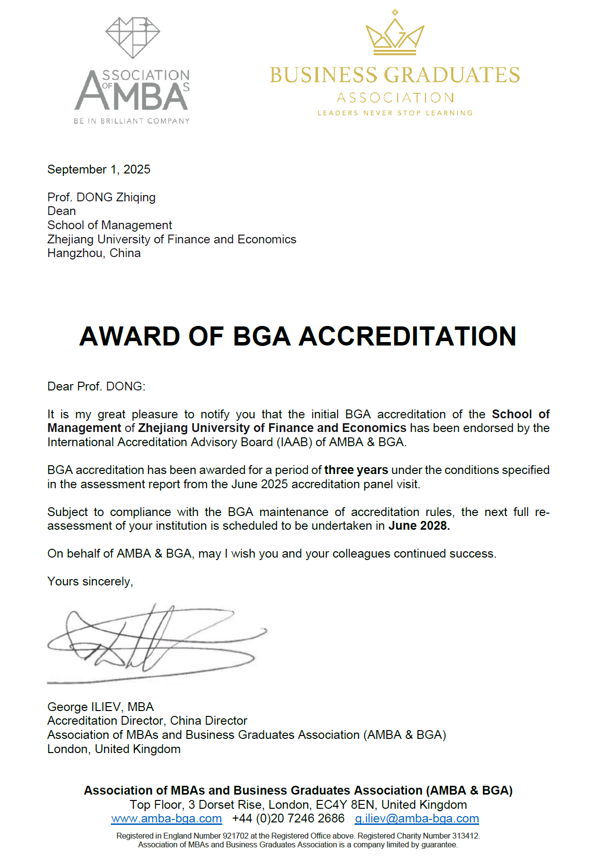 将继续严格遵循BGA认证的理念和标准,致力于培养具有全球视野、创新精神和社会责任感的企业管理人才,为服务浙江经济和推动社会可持续发展贡献更大的力量。