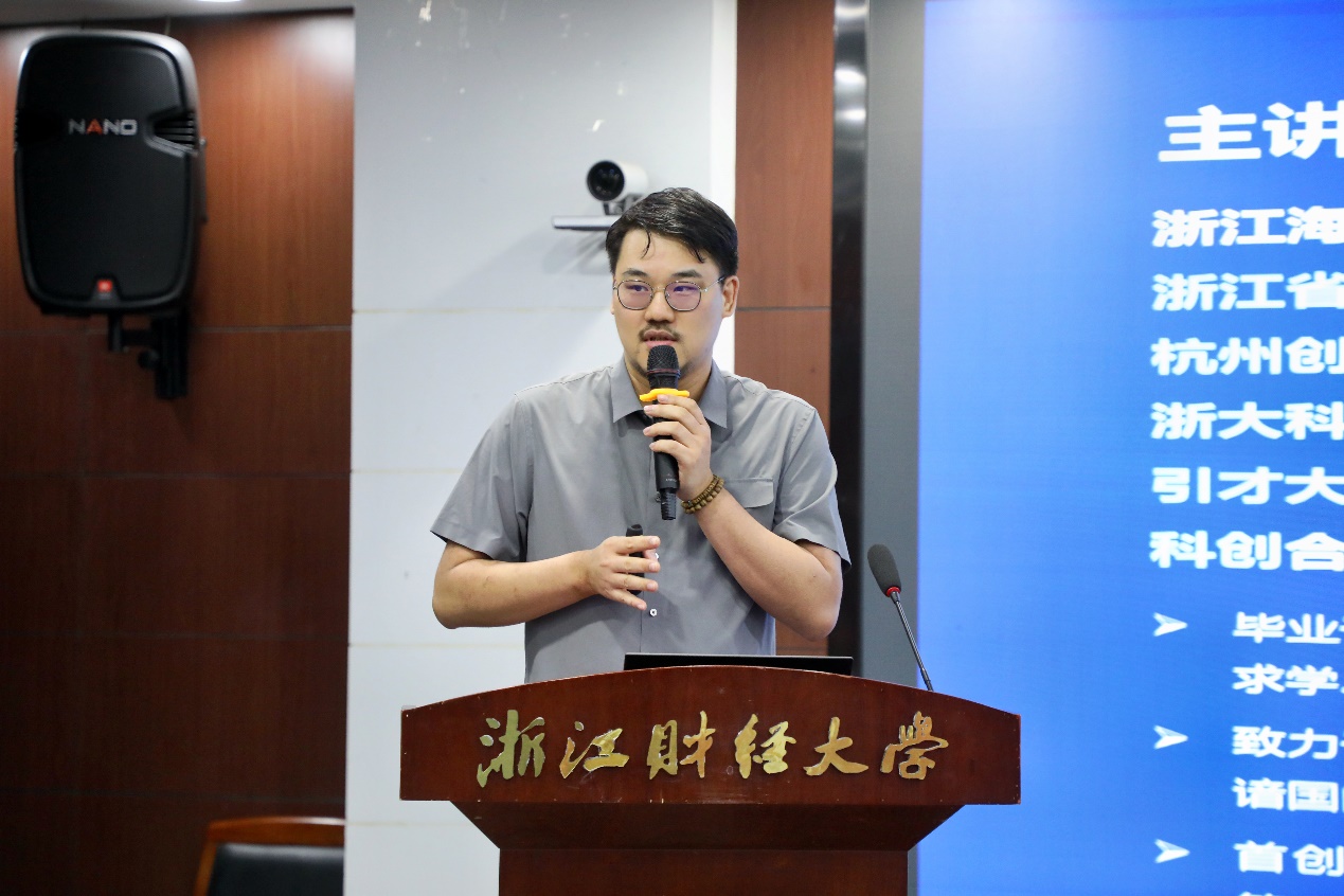 跨学科创新班宣讲会在学术中心第四报告厅顺利举行。校党委副书记程爽,项目企业方浙江海角数字科技有限公司董事长竺俊景、总经理何茹洁,校党委宣传部部长王正新、教务处处长王直民、金融学院副院长金骋路、肉漫屋