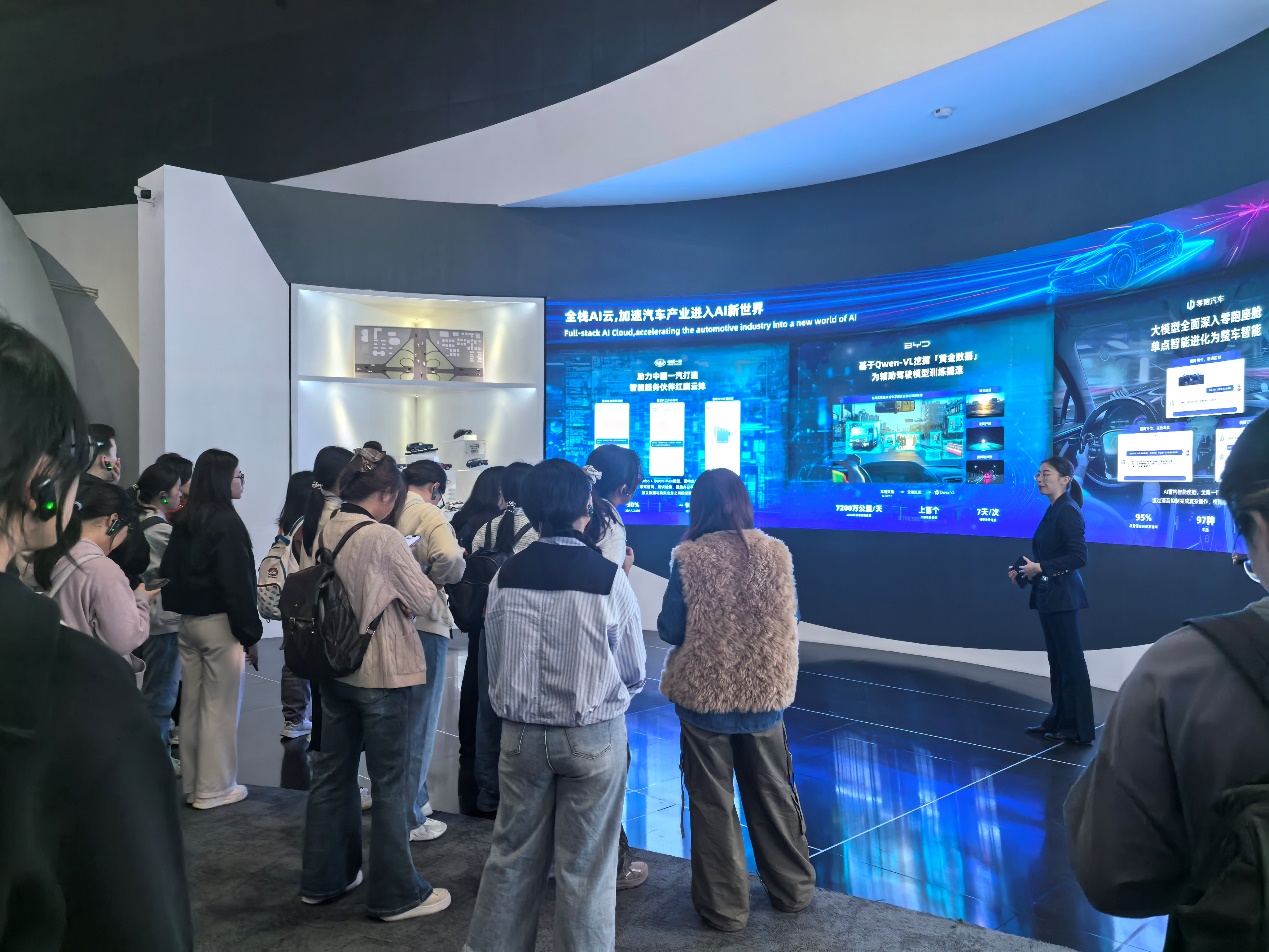 在阿里云谷讲解员的引导下,师生们参观了云计算数据中心、人工智能应用展区及智慧办公体验区。学生们亲眼见证了云计算、大数据、人工智能等技术如何支撑企业的智能决策、流程优化与组织协同。例如,智能客服平台则以自然语言处理技术提升了客户响应效率。这些案例让学生们切身感受到数字技术已成为现代管理的重要驱动力。