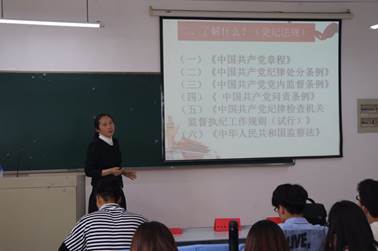 学习班的第四堂党课,由校纪委办公室副主任、监察处副处长罗金艳主讲。罗金艳副主任通过案例分析,以“严守党规党纪,永葆清廉之心”为题,与在场入党积极分子“话廉”。她指出,全体入党积极分子要牢铸忠诚品格,严守法规法纪,保持清廉本色,强化责任担当,树立廉洁意识,早日成为一名忠诚廉洁担当的合格党员。