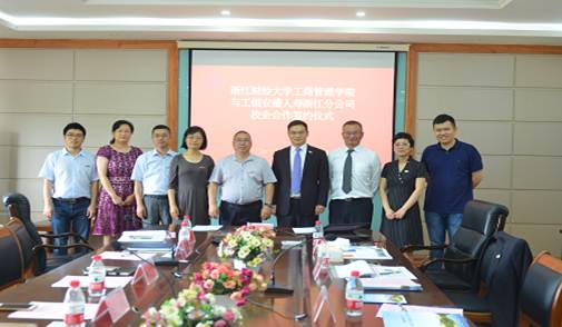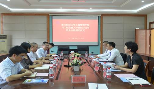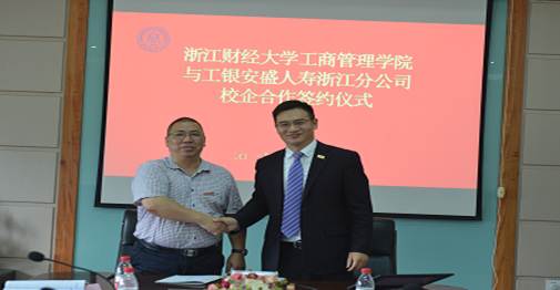 与工银安盛人寿保险浙江分公司校企合作协议签约仪式在学院楼410会议室举行。学院党委书记黄卫华、党委副书记谢敏、副院长倪文斌、办公室主任邱夏、学办主任胡星平等,工银安盛人寿保险浙江分公司总经理张玉峰、总公司代表朱晨、人力资源部经理彭文、综合管理部经理胡培红、人力资源部夏燕梅等出席双方签约仪式,还有杭州日报社、中新社浙江分社等媒体记者应邀参加了双方签约仪式。
