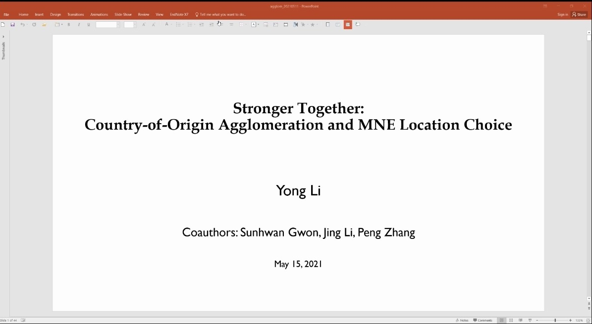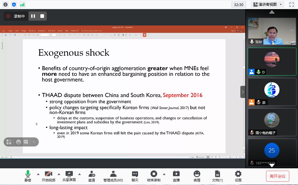 的线上学术讲座在腾讯会议平台开启。李涌教授受邀作了题为Stronger Together: Country-of-Origin Agglomeration, Regulatory Burden and MNE Location Choice的学术讲座。本次学术讲座由工商肉漫屋
