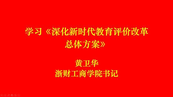 首先,学院党委书记黄卫华围绕《深化新时代教育评价改革总体方案》,从文件出台的背景和意义、主要内容和精神,以及如何贯彻落实工作三个方面,进行了全面介绍,增强了我们对于新时代教育评价改革总体思路的理解,为今后工作开展提供了方向。