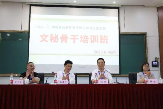 在开班仪式上,我校副校长董进才对农发行文秘学员的到来表示热烈的欢迎,并介绍了学校发展情况和此次培训的主要目的。“文秘工作不仅要求我们学员的智商,还要培养我们的情商”,校长表示作为浙江财税干部的“黄埔军校”,希望3天的学习,能帮助学员互相沟通,学有所得。接下来省分行党委委员兼营业部党委书记、总经理顾烈作从两个方面对参训学员提出寄托,顾总表示在这个高考之际,能够进入校园,重温校园生活,第一是希望大家放下工作,能够利用好3天培训学习。第二,此次是疫情后第一次组织到院校集中培训,学员踊跃参与此次培训,体现了年轻人的朝气,希望大家能够珍惜这次来之不易的培训机会,沉下心来,将知识学进去、带回去、用起来,将本次培训的价值体现在工作的提升上。