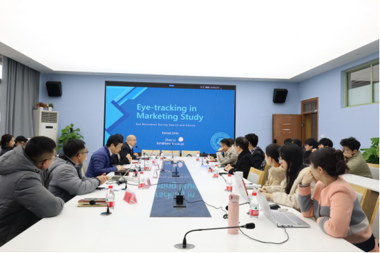 进行学术交流。他做了题为《眼动追踪在市场营销研究及教学中的应用——搜索与选择过程中的视线变化)》(Eye-tracking in Marketing Study——Eye Movement During Search and Choice)的学术报告,活动由王建国副教授主持。