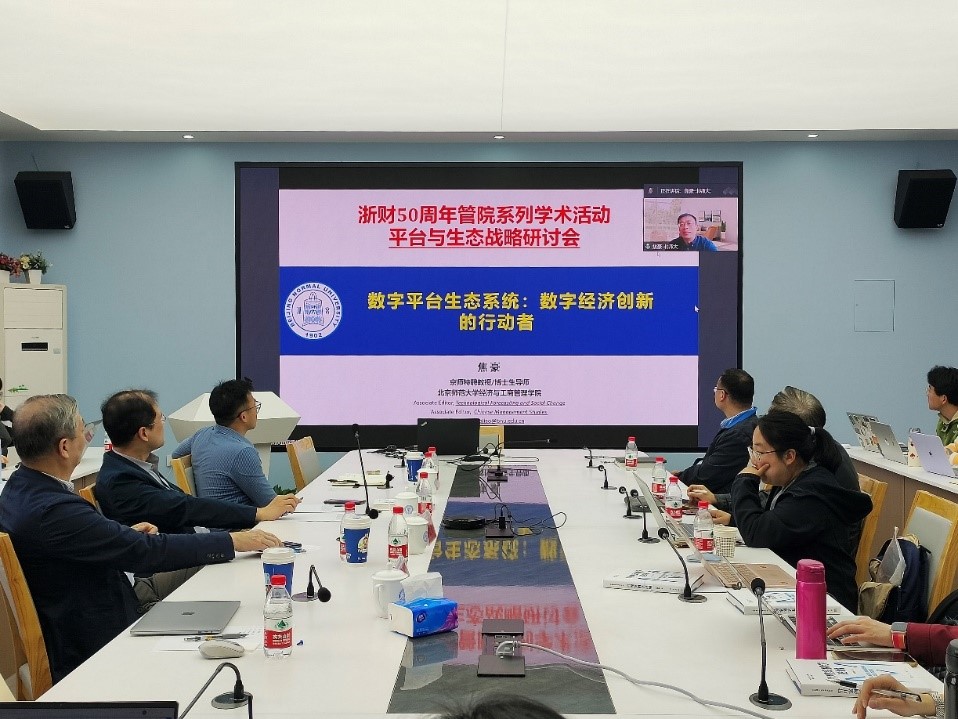 浙江大学苏钟海博士以“数字赋能边缘企业的创新创业崛起——平台生态系统研究的两条进路”为题作汇报演讲。苏博士首先讲述了边缘企业如何构建平台生态系统。以微医推动中国互联网医疗制度变迁为例,剖析新兴场域平台型企业制度创业的过程机理,得出处在边缘位置的平台型企业因其平台独特性和优势能够发起制度创业,推动场域制度变迁并从中获益。其次,他以化纤邦构建化纤产业互联网平台为例,从数字商业模式创新的视角探究其构建产业互联网平台的过程机理。苏博士之后讲述了平台生态系统如何赋能边缘企业的创新创业崛起。以海尔生态系统赋能食联网为例,从赋能维度和赋能层次两个维度探讨平台生态系统对创业企业的资源赋能。其次,他分享了结合5个主流平台生态系统,采用组态分析策略开展的研究,指出平台生态系统的市场资源是其赋能互补企业创新驱动创业的必要条件。最后,苏博士对平台生态系统情境下数字赋能边缘企业创新创业崛起这一研究议题进行了展望。