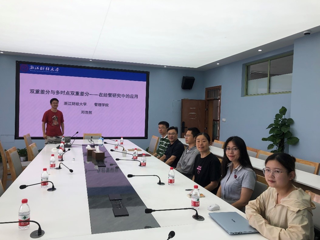 邓浩然老师首先详细介绍了自己的研究工作,对经典双重差分及多时点双重差分在经管研究中的应用进行了案例和论文的讲述,他深入浅出的讲解激发了现场老师的方法应用兴趣。