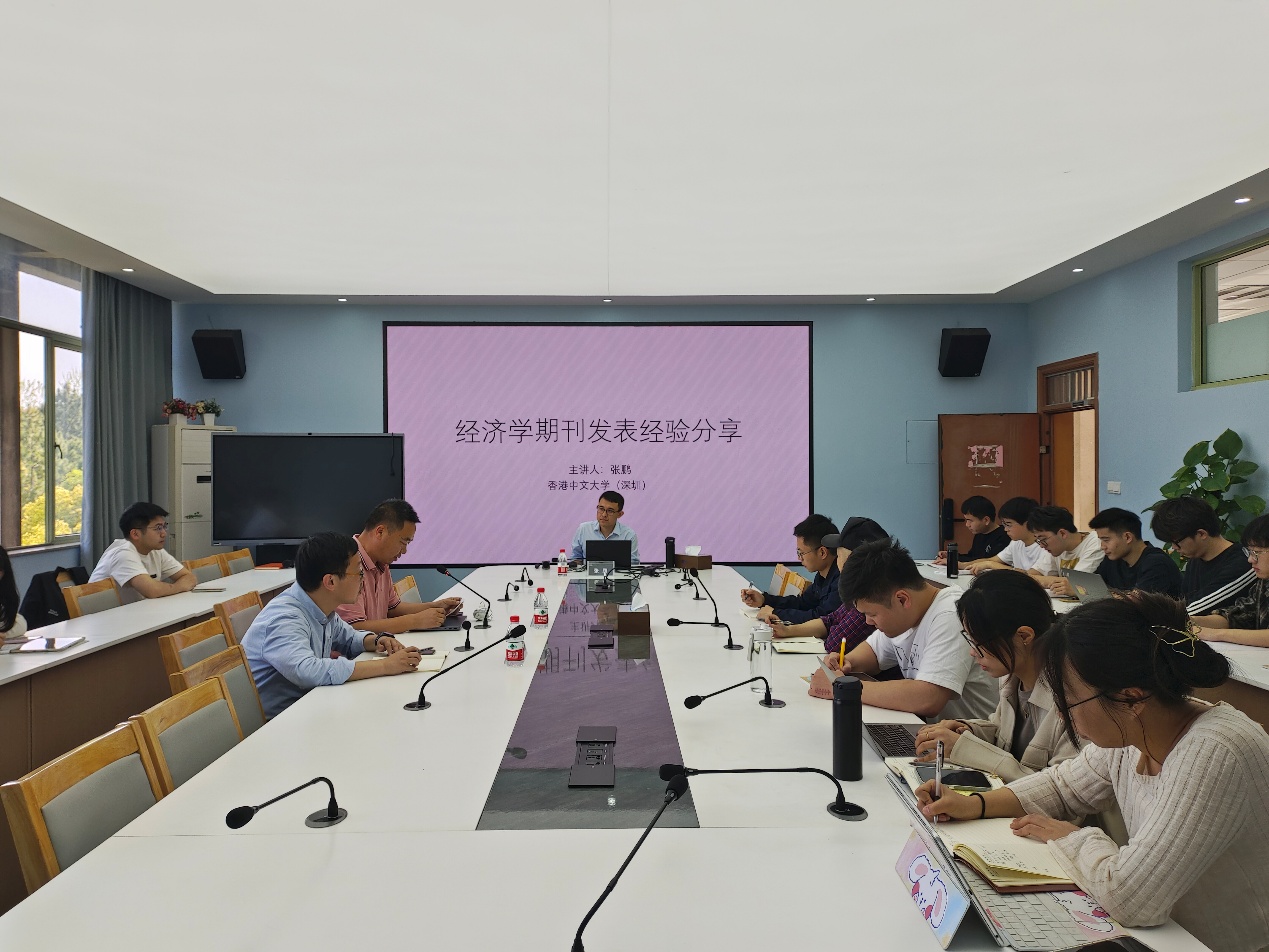 416会议室成功举办。本次讲座邀请了香港中文大学(深圳)经管学院长聘副教授张鹏,以“英文经济学期刊发表经验分享”为题,向在场师生做了系统的分享。论坛由董直庆院长主持,学院师生共20余人积极参与。