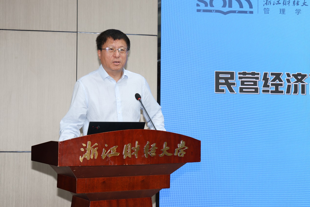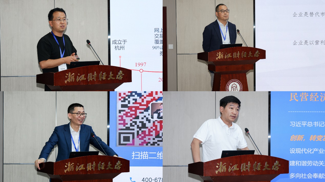 教授贾利军以“从东方营销学谈胖东来的‘道德经’”为题,强调民营企业应贯彻正确的商品观、利润观、市场观和商人观,并基于东方营销学从时间规律与空间规律中总结出,企业应当学会顺势、造势,方能实现长足发展。杭州发改委营商环境和民营经济发展处处长范诗武以“杭州市以一流营商环境赋能民营经济创新发展”为题,分享了杭州营商环境赋能民营经济创新发展的路径与成效。杭州市通过营造透明高效的政务环境、有温度的法治环境、充满活力的创新环境、开放包容的人文环境和舒适宜居的生活环境,为民营企业提供了有利的发展条件;在促进民营经济创新发展的过程中坚持有效市场与有为政府协同、视民企和企业家为宝贵财富、发挥政策与改革叠加效应、构建企业梯度培育体系、平等保护各类经营主体。上海交通大学环境科学与工程学院、凯原法学院双聘教授魏文栋以“企业ESG与绿色低碳供应链管理”为题,介绍了推动企业SDGs评价全球实践的方案以及已有研究进展,并针对绿色低碳供应链发展,提出绿色供应链应贯穿企业全生命周期管理,其发展需政府主导和企业实践相结合。我校经济学院教授、党委宣传部部长王正新以“内生创新文化与经济增长”为题,指出创新文化是驱动人力资本积累和技术进步的更为根本的内生因素,将创新文化作为经济增长的内生变量纳入分析框架有利于更全面地理解长期经济增长的动力机制,并提出有效培育和发展创新文化的政策建议。华中科技大学肉漫屋