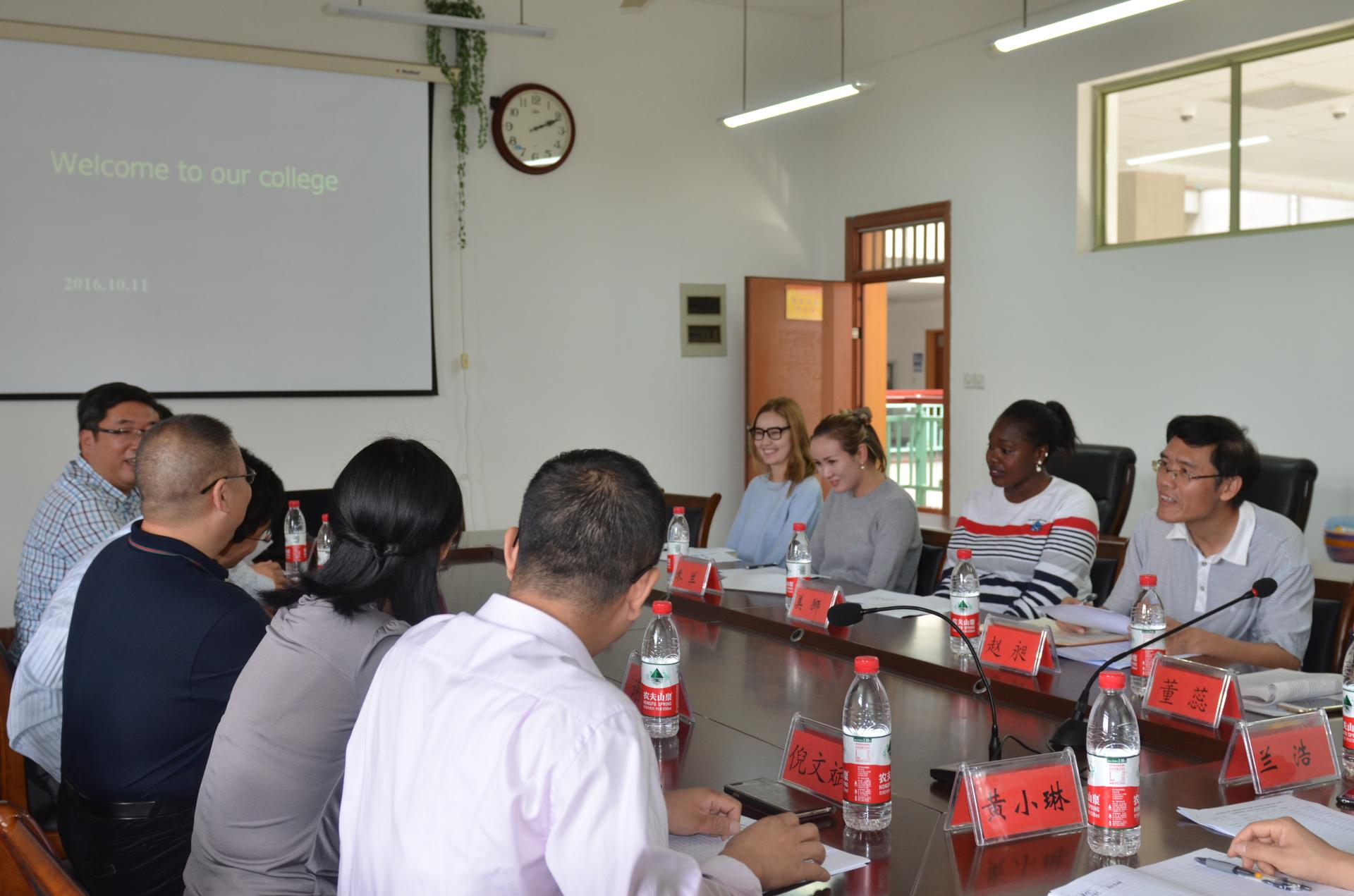 10月11日下午,学院院长董进才老师、党委书记黄卫华老师,党委副书记谢敏老师,副院长王建明、倪文斌老师,国际学院副院长李汉强老师以及两个学院相关老师与肉漫屋