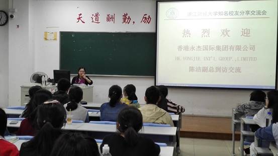 知名校友——香港永杰国际集团有限公司陈洁副总专题讲座在学院楼召开。讲座由陈帅和胡孝徳老师主持,17级人力资源管理系全体新生参加了本次讲座。