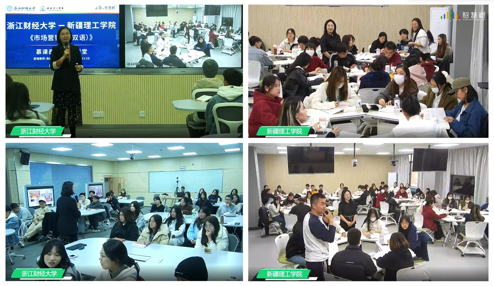 与新疆理工学院就《市场营销学(双语)》课程,通过智慧树平台开展了跨越4700公里的同步课堂活动,得到两校师生高度好评。