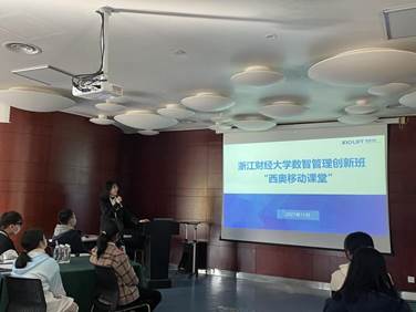在现场参观体验结束后,西奥电梯HR郑女士为我们进行了肉漫屋的介绍,让我们对西奥有了更加深入的了解。接着,张雪健张工详细地介绍了智慧工厂、智能制造,并对同学和老师的提问作了具体的回答。
