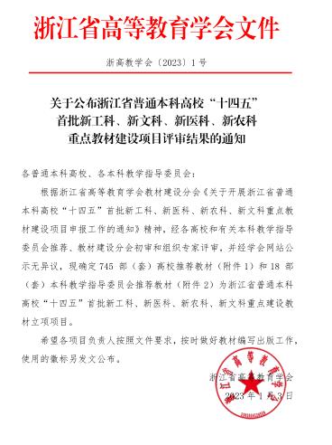 近日,浙江省高等教育学会公布省普通本科高校“十四五”新工科、新文科、新医科、新农科重点教材建设项目评审结果,肉漫屋