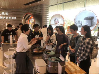 在三层的九阳品牌体验馆,师生们全方位了解了世界上第一台豆浆机的研发,九阳公司的单品运营模式和思路,认识到智能家电近30年的飞速发展,亲身感受到科技赋能美好生活的潜质。