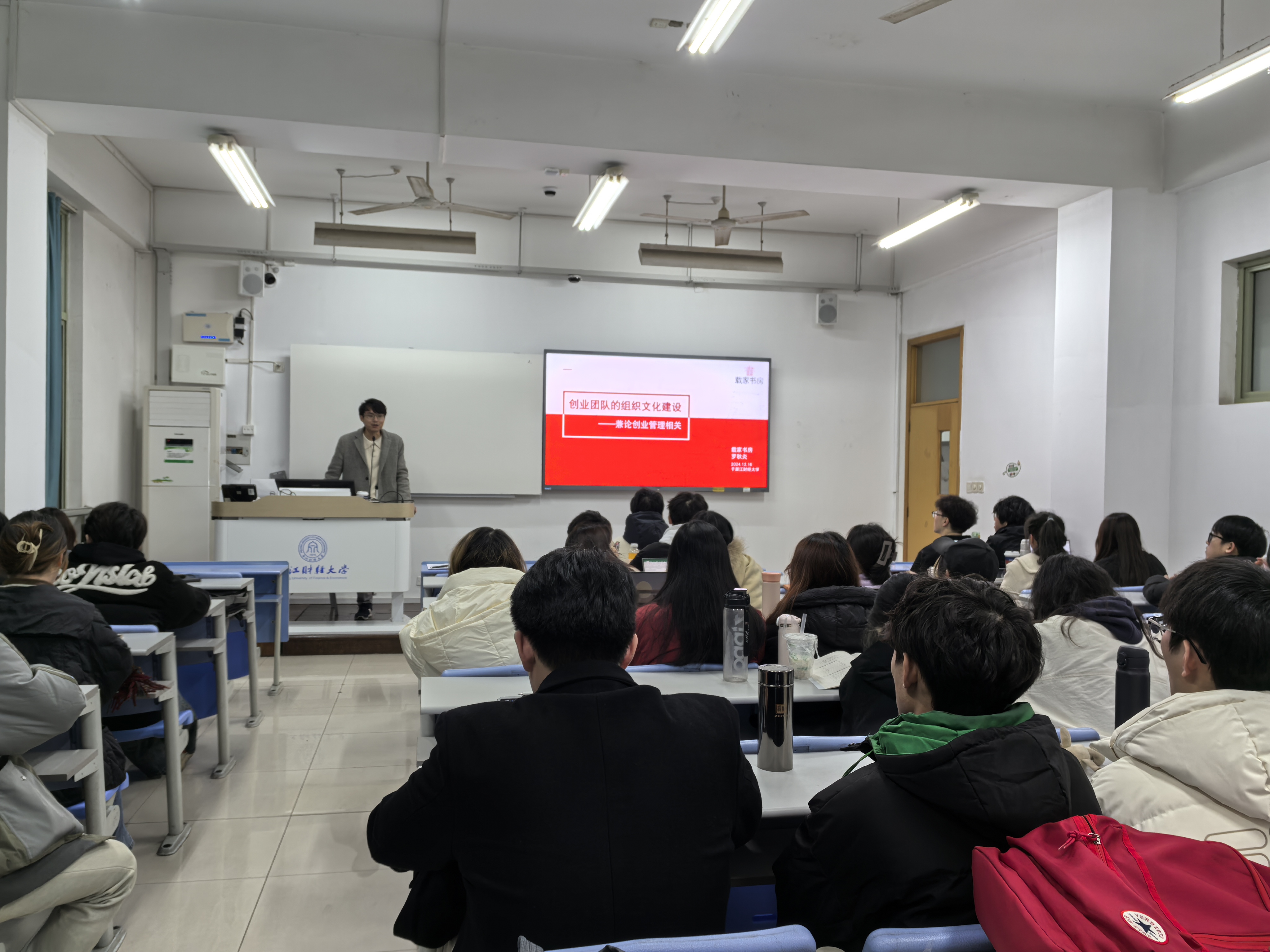 2019届校友、载家书房创始人兼CEO罗秋炎,给同学们带来了“创业团队的组织文化”的主题分享。
