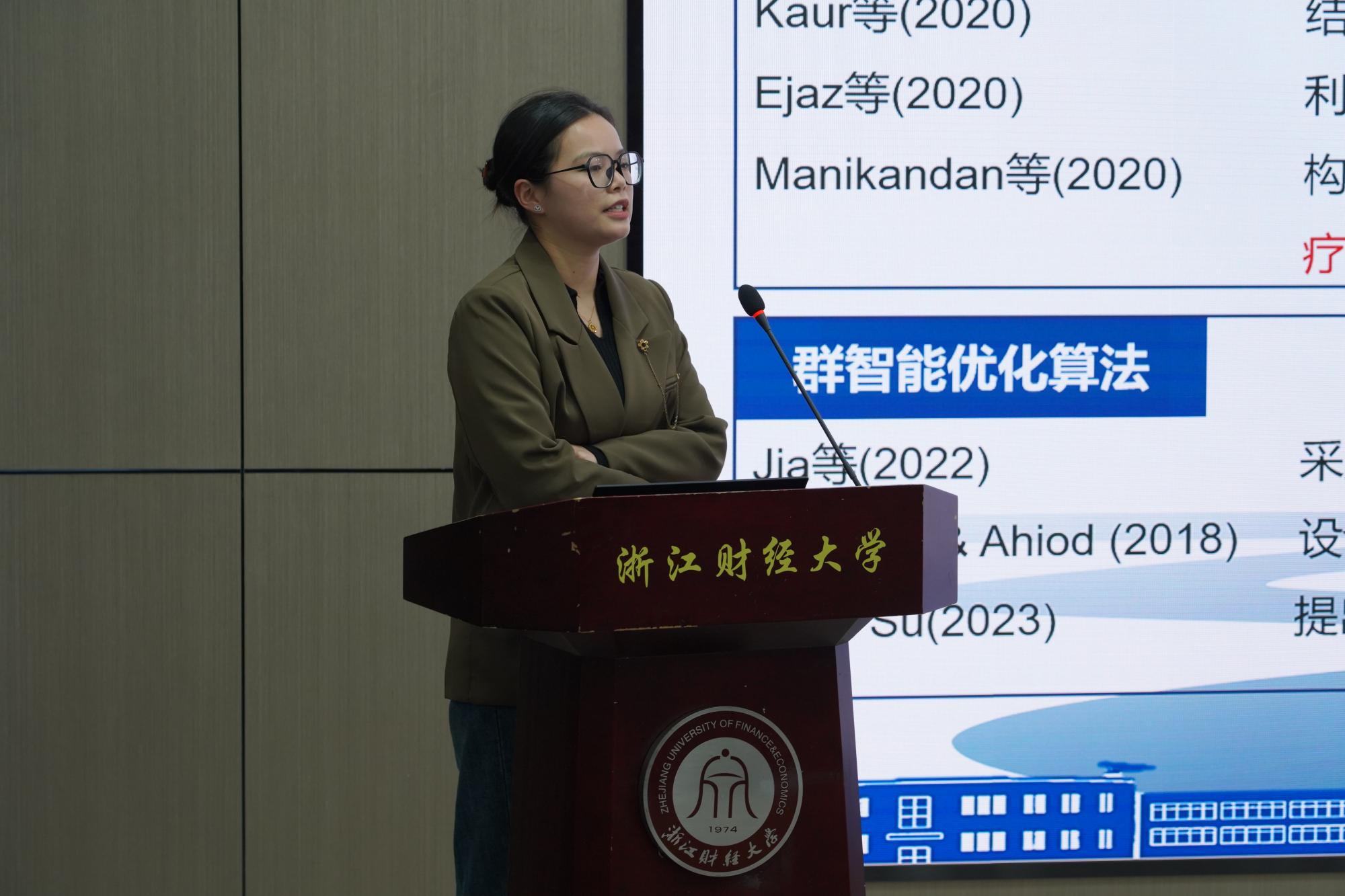 入围研究生按照抽签顺序依次上台汇报研究成果。选手们围绕新质生产力、数字化管理、企业创新发展等热点主题深入剖析,展现了深厚的学术功底与创新能力。每位选手汇报结束后,评审专家从研究方法、数据分析、论文逻辑等方面提出中肯建议,并给予鼓励和指导。