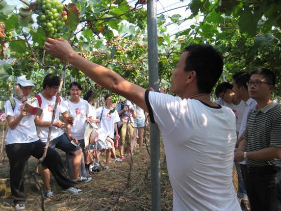 在为期一周的调查中,同学们参观了钟先生的绿色家场、走访了俞女士的葡萄基地、探访了镇政府规划的规模性鱼塘、观摩了陈家的手工作访,访谈了十二位创业的失地农民,收获颇多。实践组成员小徐感慨的说:“没想到国家政策对农民创业是这么的重要啊”;而小周也深有感触,诚信、食品安全、技术工人对创业也是不可缺少的因素啊。在学校里大家都认为自己已经学到了很多知识,未曾想,到了这里,学到的东西变的那么的“苍白无力”,而农村所需要的农业技术人员,真是少之又少。