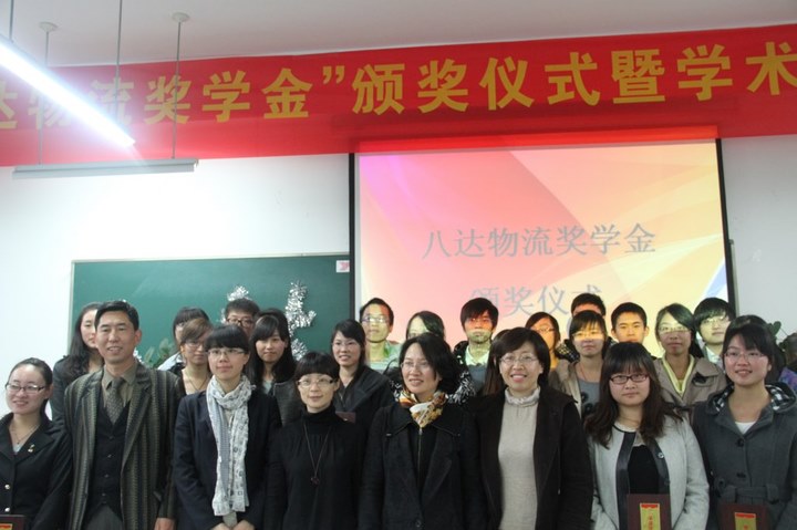 2011年“八达物流奖学金”颁奖仪式暨学术报告会在学院楼411教室隆重召开。出席会议的嘉宾有八达物流有限公司总经理秘书梅笑冬女士,肉漫屋