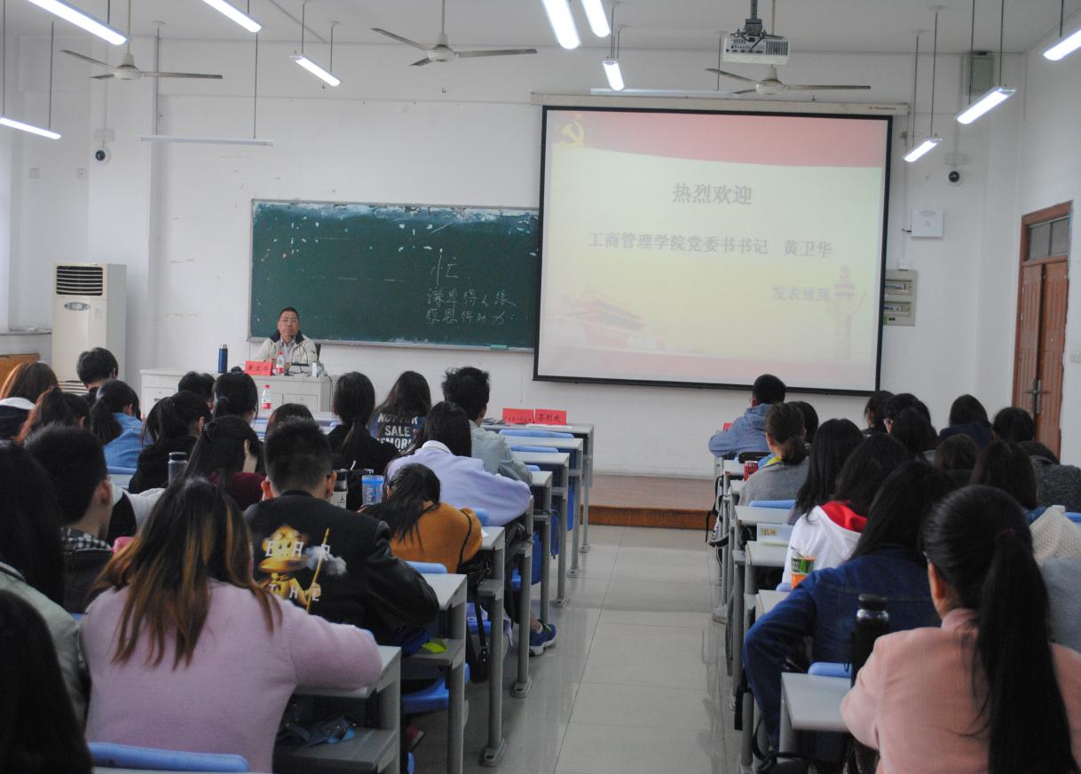 (MBA学院)党委书记黄卫华老师、学办主任本次党课学习班班主任胡星平老师出席了开班仪式。仪式上,黄卫华书记为学员们做了讲话,他强调本次学习班学员是通过班级民主投票——所在支部讨论推荐——学院党委审核,最后发文公示等严格程序推选到这里来参加党的基本理论知识学习的,大家一定要珍惜这次来之不易的学习机会,认真听讲并做好听课笔记,努力学习,以实际行动积极向党组织靠拢。并向同学们介绍了工商肉漫屋