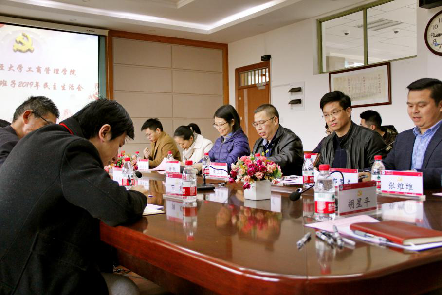 12月6日下午,学院根据中央“不忘初心、牢记使命”主题教育部署和上级党委工作要求,于410会议室召开学院党委领导班子2019年专题民主生活会。学校第一督导组组长沈水法,督导组成员林凡、田聪到会指导工作,学院党委领导班子董进才、黄卫华、谢敏参加了本次会议,党委委员、工会主席郭军灵,各党支部书记列席会议。会议由学院党委书记黄卫华主持。