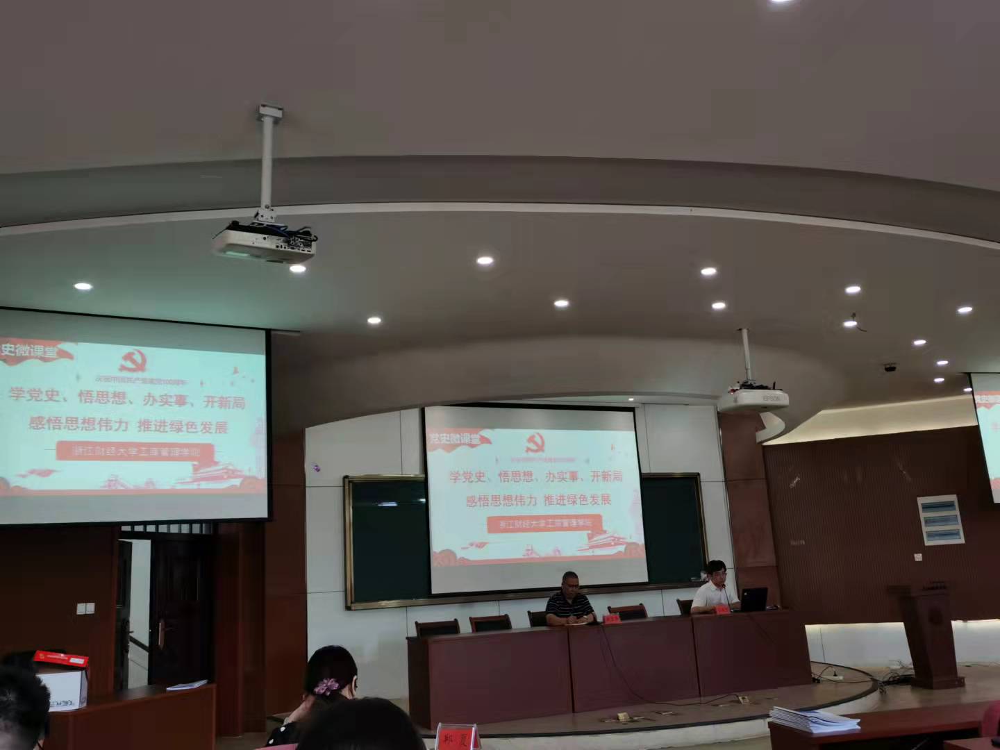 工商管理学院院长王建明从习近平“两山”理念的提出及其对浙江企业绿色管理的深远影响,做了“学党史、悟思想、办实事、开新局,感悟思想伟力,推进绿色发展”的报告。他从2005年8月15日,在浙江安吉余村,时任浙江省委书记的习近平同志创造性地提出“绿水青山就是金山银山”的重要理念,到解读“两山”理念的科学内涵及其内在逻辑,再到浙江绿色管理的五大战略行动闭环,最后讲述了“两山”理念提出对浙江企业绿色管理的深远影响。他指出要用学术讲政治,用框架思维代替罗列式思维,擦亮三重底色,红色江山万年红,绿色青山万年绿,改革创新活力蓝,坚决担负起生态文明建设的政治责任,全面贯彻落实党中央决策部署。