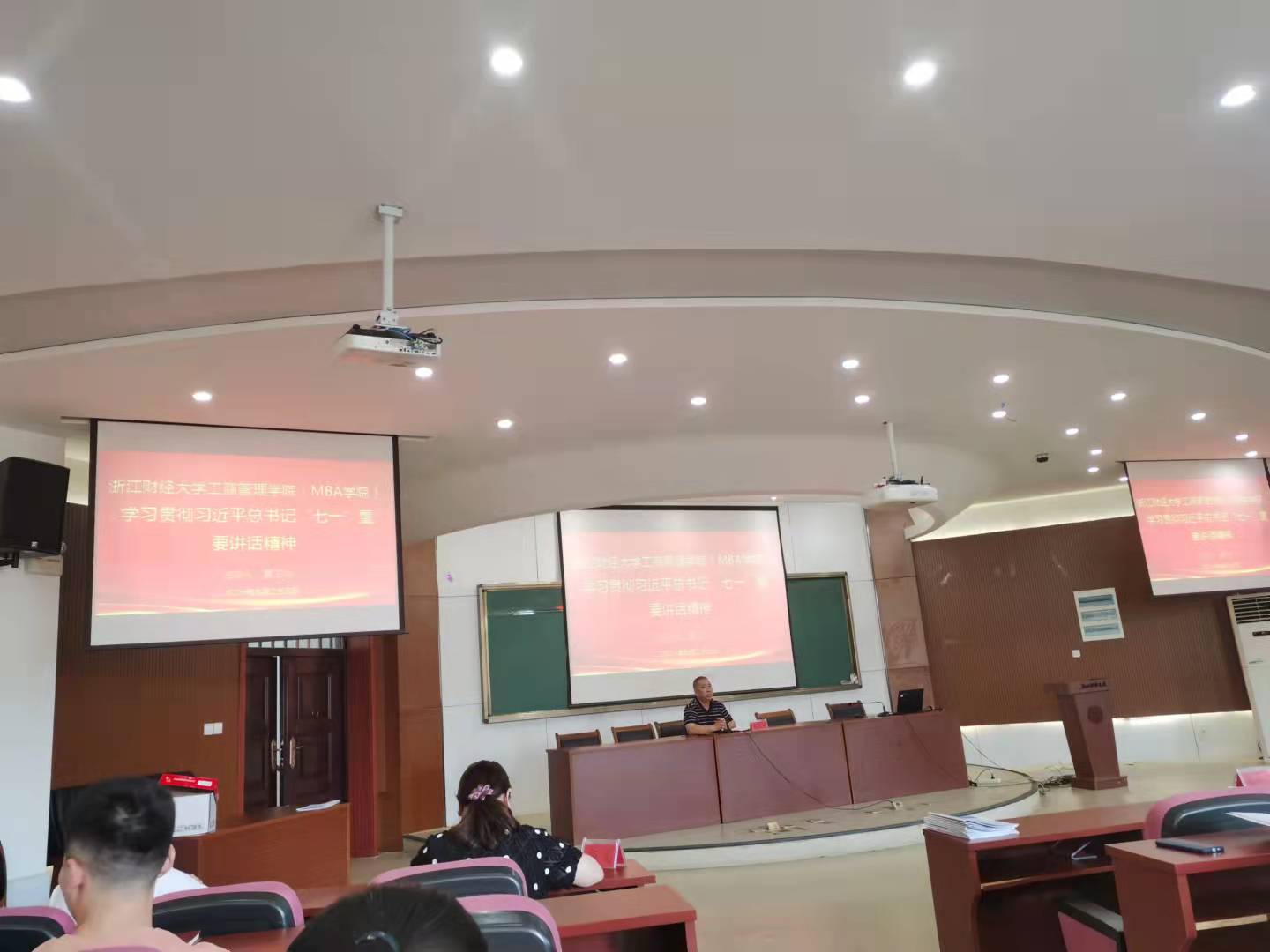 工商管理学院党委书记黄卫华,带领大家深入学习了习近平总书记“七一”重要讲话精神。他强调,习近平总书记“七一”重要讲话立足中国共产党百年华诞的重大时刻和“两个一百年”历史交汇的关键节点,回望光辉历史、擘画光明未来,是一篇马克思主义纲领性文献,是新时代中国共产党人不忘初心、牢记使命的政治宣言,是我们党团结带领人民以史为鉴、开创未来的行动指南。要坚持以习近平新时代中国特色社会主义思想为指导,增强“四个意识”、坚定“四个自信”、做到“两个维护”,把学习贯彻“七一”重要讲话精神与统筹推进党史学习教育、抗击新冠肺炎疫情、教师思政和师德教育、学院申博等当前重点工作结合起来,着力解决师生急难愁盼的问题,将学习成果转化为推动教育工作的强大动力,转化为奋进新征程、建功新时代的实际行动。