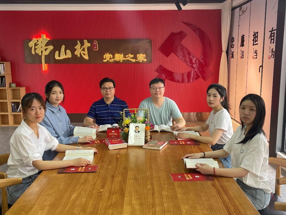 随后在佛山村党群之家学习室,郭军灵老师带领大家学习了《习近平与大学生朋友们》一书的部分章节,并总结了佛山村在乡村数字化、农旅发展、乡村振兴、共同富裕等方面的情况。与会党员逐一畅谈了关于乡村农旅发展、大学生如何助力共同富裕的想法和意见,并将学习经验化为己用,从而在未来能够学以致用,支持更多乡村实现共同富裕!