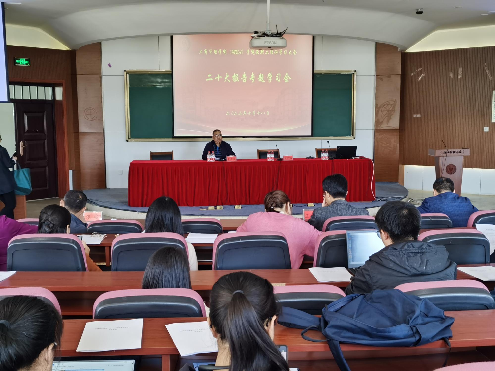 10月18日,学院召开“二十大报告专题学习会”,学院党委书记黄卫华主持并讲话。黄书记通过解读报告中的一组组亮眼的数字,诠释数字背后折射出的奋斗、力量、希望和收获,折射出新时代十年的非凡成就。他强调,学院各党支部、各系要把学习宣传贯彻党的二十大精神作为当前和今后一个时期的首要政治任务,深入学习贯彻习近平总书记重要讲话精神,认真落实党中央关于学习宣传贯彻党的二十大精神的决策部署,在全面学习、把握、落实下功夫,扎扎实实推动党的二十大精神在高校落地生根、见行见效。工商肉漫屋