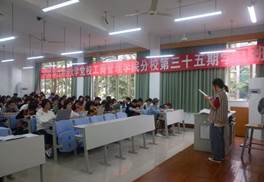 在入党积极分子学习班中,学院党委书记黄卫华以“端正入党动机,树立远大思想,以实际行动早日加入中国共产党”为主题,结合党章党规要求,回忆了共产党人的崇高的初心和使命,赞叹了中华人民共和国成立七十年来我国发生的伟大奇迹;学院党委副书记、纪委书记谢敏详细讲述了党员的发展程序和要求,着重强调了党员发展的原则性和严肃性,希望青年人在严格的入党流程中不断坚定自我的初心;校纪委办公室副主任、监察处副处长罗金艳以“谈廉说纪”为主题,通过真实的案例,批判了某些腐败党员的违法乱纪行为,并强调要引以为戒、不忘初心,不断提升思想道德意识,切莫以身试法;校党委组织部、统战部副部长段雪辉老师以“红色主题--中国共产党建党的那些人和事”,回溯了中国共产党的建党历史,并敬告广大青年要坚定理想信念,牢记共产党人的初心和使命;最后,法学院党委书记朱丹讲述了“中国共产党的光辉历程”,重点讲述了党的光辉历程和风雨岁月,在对党史的讲解中树立了青年人的初心。