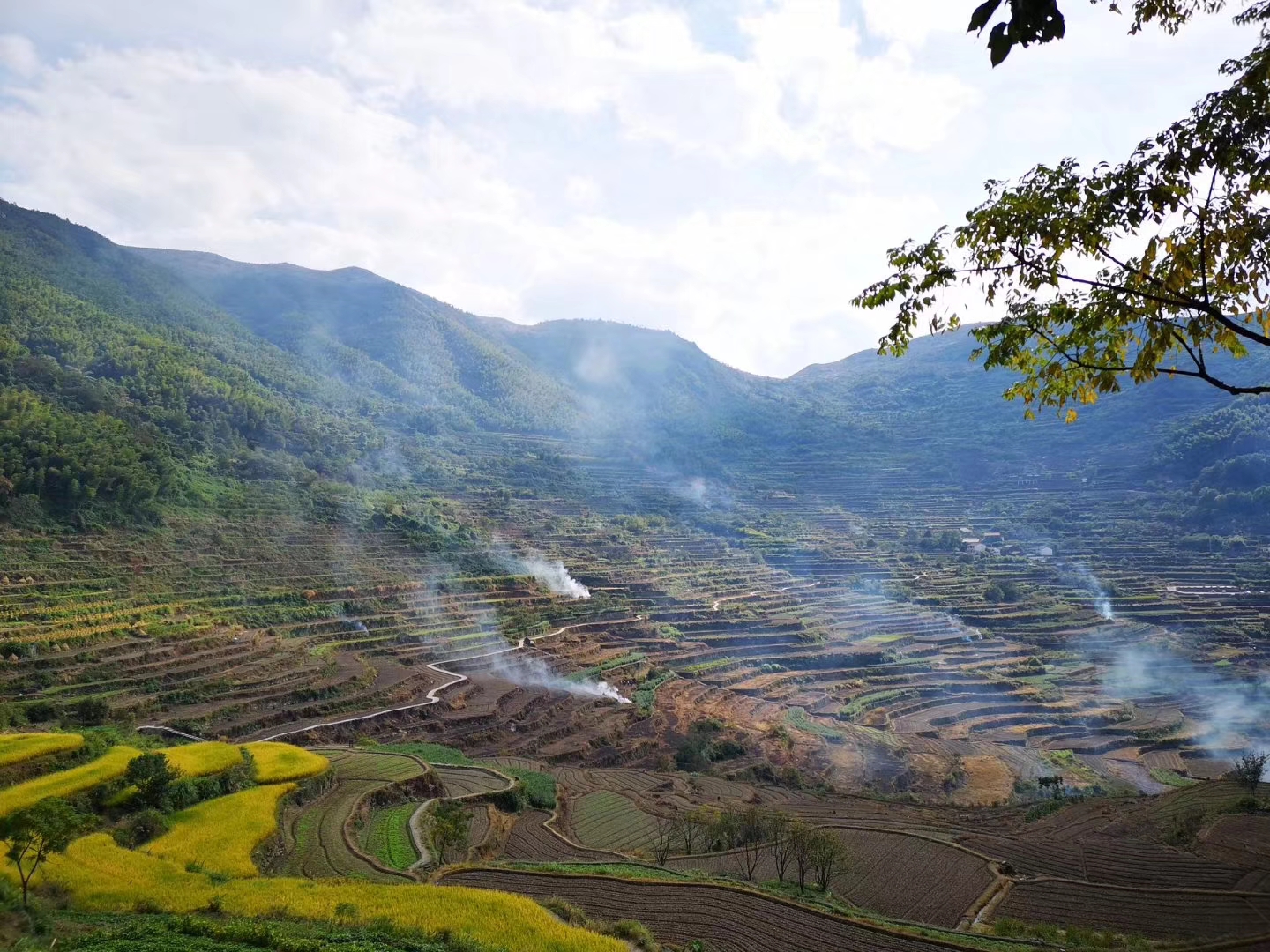 从孝德园回来,教工一行又攀登了上虞覆卮山,游览了山腰的千年梯田。覆卮山为上虞最高峰,因东晋山水诗人谢灵运“登此山饮酒赋诗,饮罢覆卮”而得名,以冰川石浪、千年梯田、百年古村、上虞第一高峰、“四季仙果”而闻名。行车抵达覆卮山山腰后,教工携子女们开始徒步上山,大家有说有笑,有的老师们交流着途中的见闻和感受,有的与子女或身边友人议论着乡间野趣,以及路边野果的名字、品种,各个不亦乐乎。不知不觉间,教工一行已接近山顶目的地,由上往下看,风景美不胜收,孩子们嬉戏玩耍,女教工们秀出美妙姿势各种拍照,男教工们则负责担任摄影师或彼此交谈说笑。