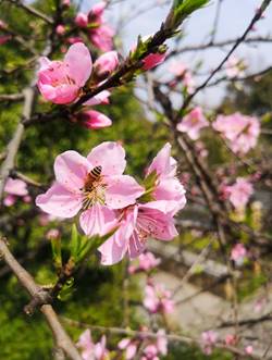教职工在我校南门口集合,前往位于杭州城北的皋亭山千桃园。一年一度的皋亭观桃节也在这天如约而至,一朵朵粉白色的桃花已悄然绽放枝头。教工在这艳阳天户外踏春,欣赏着烂漫桃花挂满枝头的美景,虽然今年由于天气原因,桃花开的姗姗来迟,花期比平时晚了些,许多还在枝头含苞待放,却丝毫不影响教工们赏花的心情,男老师们讨论着、说笑着,女老师们个个笑靥如花,欢声笑语一路洒在桃林和桃花丛中。