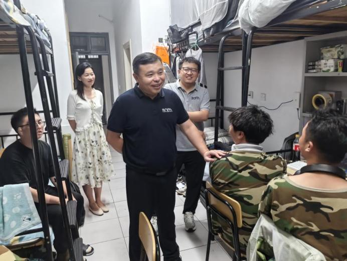 党委书记朱力明、党委副书记陈小芳等一行深入本科生新生寝室,开展走访慰问活动。此次走访旨在进一步了解新生入住后的适应情况,传递学院关怀,助力新生快速融入大学生活,为军训顺利推进及后续学习生活奠定良好基础。
