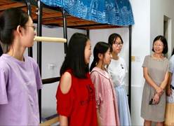 在桃李苑的走访中,面对来自新疆、湖南、湖北、山东等地的同学们,黄卫华书记亲切地与他们聊起了家常。饮食是否习惯学习上压力大不大,这些问题使同学们倍感亲切,一下子卸去了原本的拘束。黄书记指出,青春是用来奋斗的,而优秀的学习风气,是要从寝室的建设开始的。寝室内形成的勤学好问、慎思明辨的优良学风,对同学们的未来发展是非常有利的。一些女生寝室还经过了同学们自己的装饰,门贴、桌贴、书立,在提升寝室生活质量的同时塑造了浓厚的学习氛围,备受倪副院长的欣赏,倪副院长还对女生寝室的卫生情况特别提出了表扬。