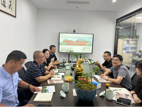 (MBA学院)党委书记黄卫华带队走访了校友企业蓝城房产建设管理有限公司和杭州通源环境治理工程有限公司,与校友进行了座谈交流。