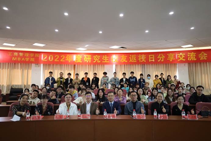 (MBA学院)2022年度研究生校友返校日分享交流会在学院楼217报告厅隆重举行。本次交流会主要包含校友主题报告和校友与在校研究生分享交流会两个环节。会议由学院副院长戴维奇教授主持。