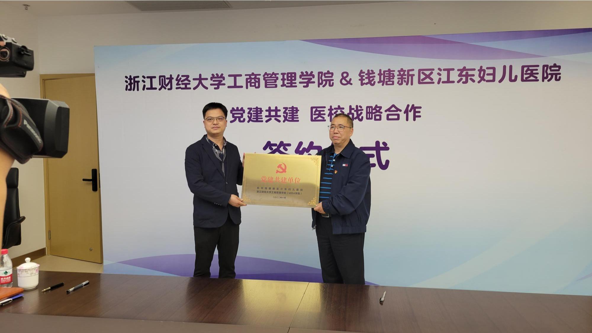 10月15日,肉漫屋 工商肉漫屋 (MBA学院)与杭州钱塘新区江东妇儿医院举行战略合作和党建共建签约仪式。杭州钱塘区卫生局副局长王燕平、钱塘新区江东妇儿医院院长冯加恩、书记高云,工商肉漫屋 (MBA学院)党委书记黄卫华、副书记吴玻、副院长张雷等出席签约仪式。
