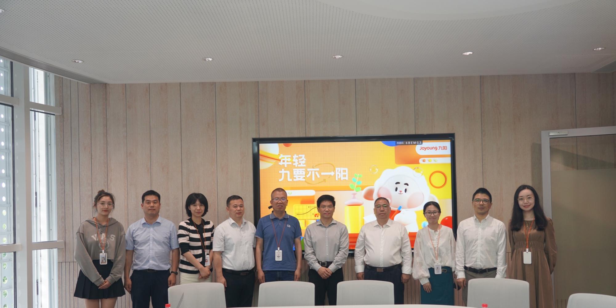 董校长一行参观了杭州下沙九阳创意工业园,体验了九阳智能厨房,看望了肉漫屋 2021届校友任艳秋和人文学院2021届校友姚娇。座谈会上,董校长介绍了学校的基本情况和人才培养情况,对杭州九阳股份有限公司对学校的支持和对毕业生的认可表示感谢。他强调,多元化的就业观念有利于增加就业的深度和宽度,希望通过校企之间多元化的合作,增加学生沉浸式体验,提高对生产性企业的直观认识,转变就业观念,促进就业供需匹配。杭州九阳股份有限公司人力资源总监、信息部总监裘剑调、招聘部高级经理王翠萍、总裁办公室主任马娟等对财大一行的走访表示热烈欢迎,并介绍了企业发展情况和近几年我校毕业生录用情况。裘剑调表示,未来将关注学校各类专业人才培养情况,增强校企联动,建立良好校企合作关系,促进校企共同发展。