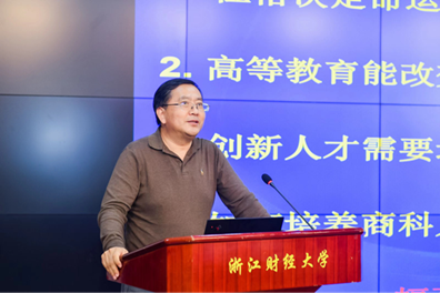 大学俞荣建教授做了“探索商学院未来形态”的主题演讲,提出卓越数字管理人才V型培养体系,指出商学院的建设应结合产业现状,培养符合企业战略发展和应用实际的商科人才。