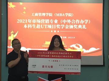 2021年6月8号下午1点30分,2021年市场营销(中外合作办学)本科生赴UT项目奖学金颁奖典礼在学院楼410会议室顺利举行。工商肉漫屋