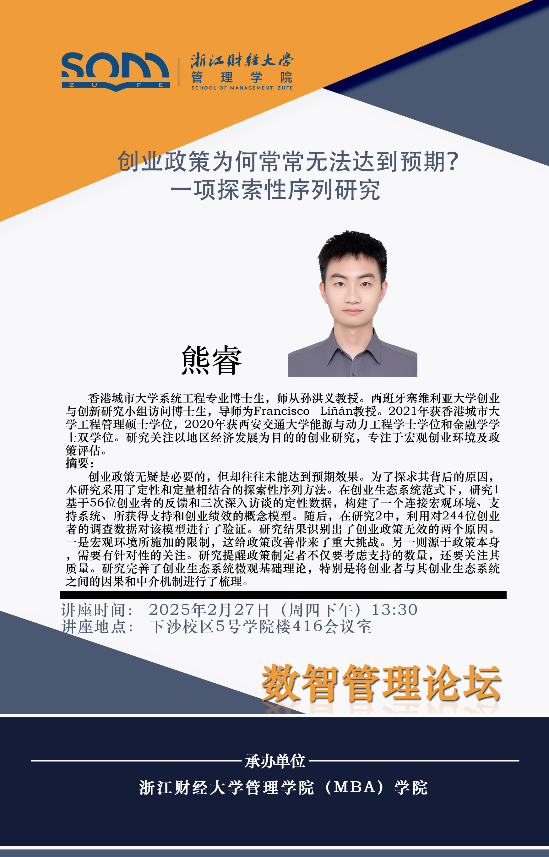 讲座题目:创业政策为何常常无法达到预期?一项探索性序列研究